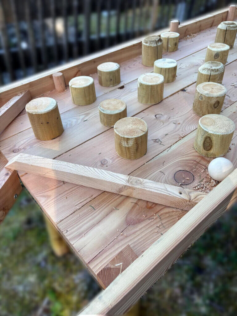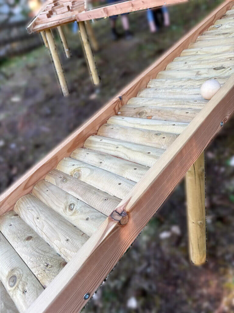Die Kugelbahn ist ideal für kleine Forscher und Entdecker, die gerne beobachten, wie Dinge in Bewegung geraten. Vor allem Kinder, die Freude an Ursache-Wirkung-Spielen haben (was passiert, wenn die Kugel hier anstößt?), werden stundenlang beschäftigt sein. Auch für jüngere Geschwister, die vielleicht noch zu klein für die großen Kletterrouten sind, ist es die perfekte Beschäftigung an der frischen Luft.